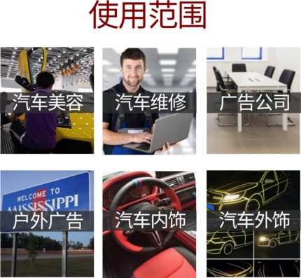 汽車美容店、汽車修理店、廣告公司、戶外安裝等